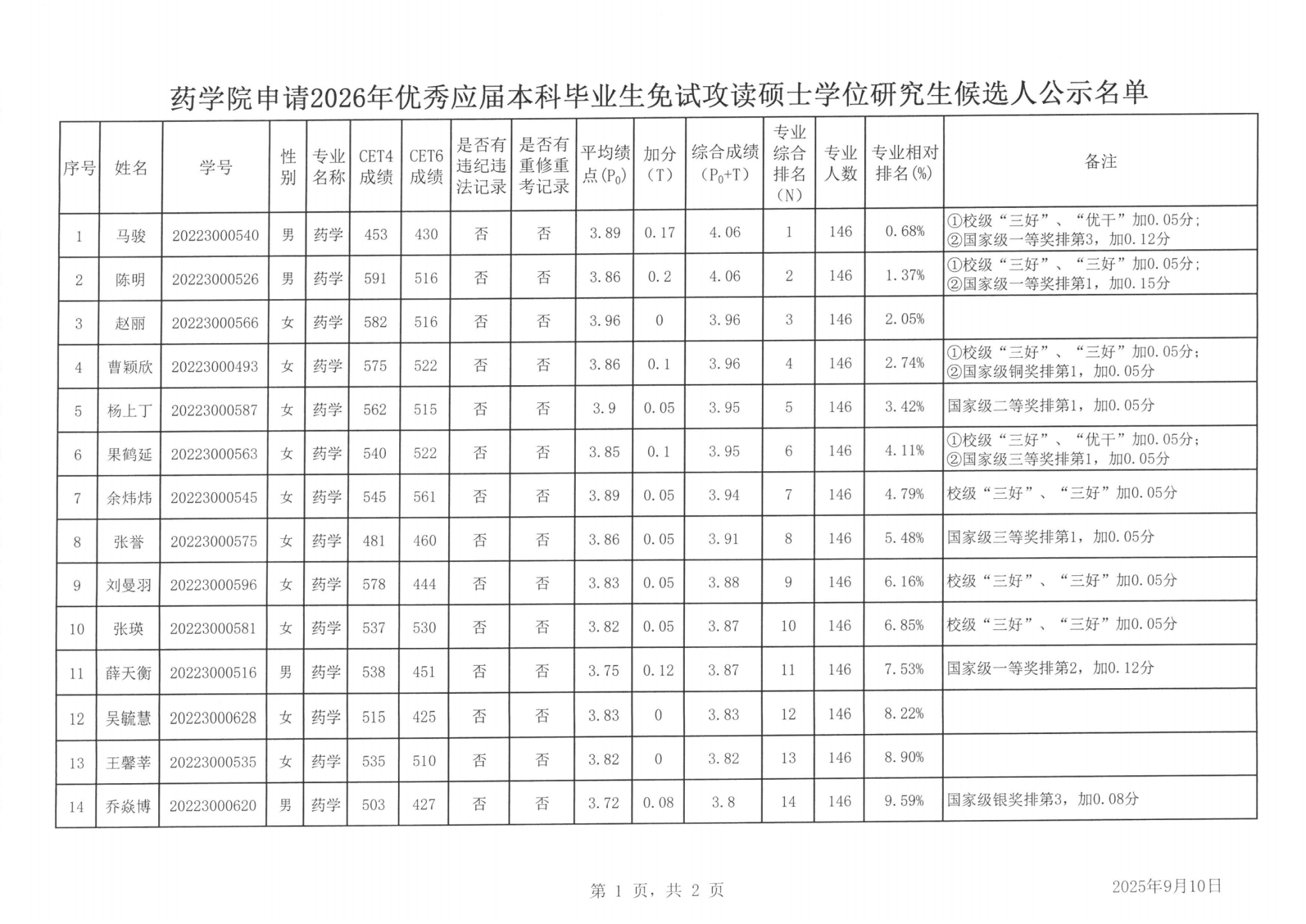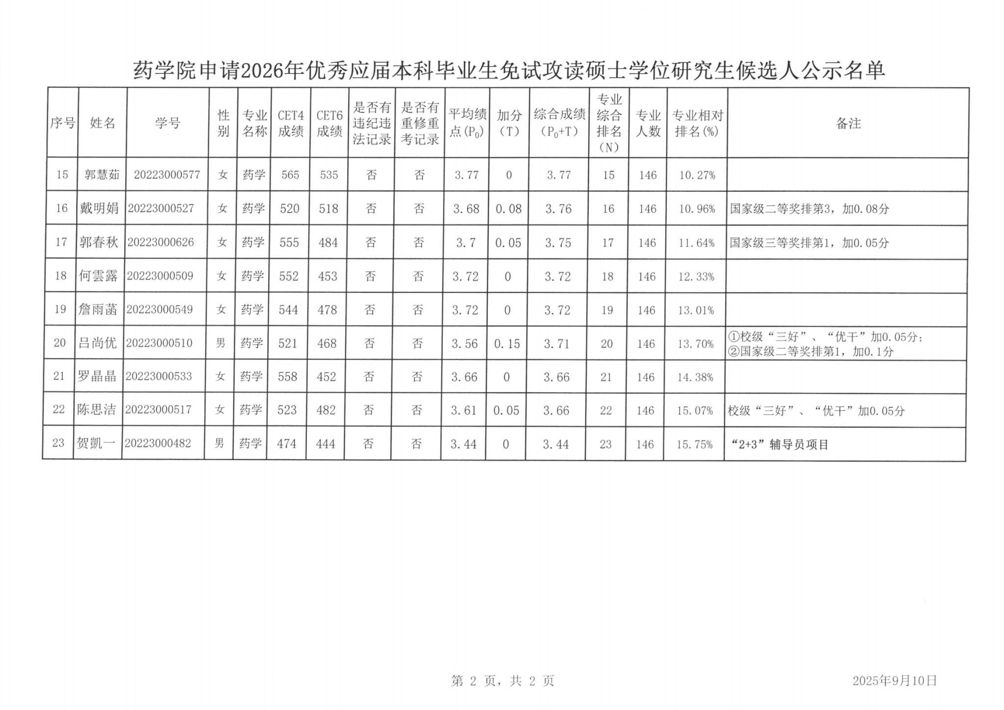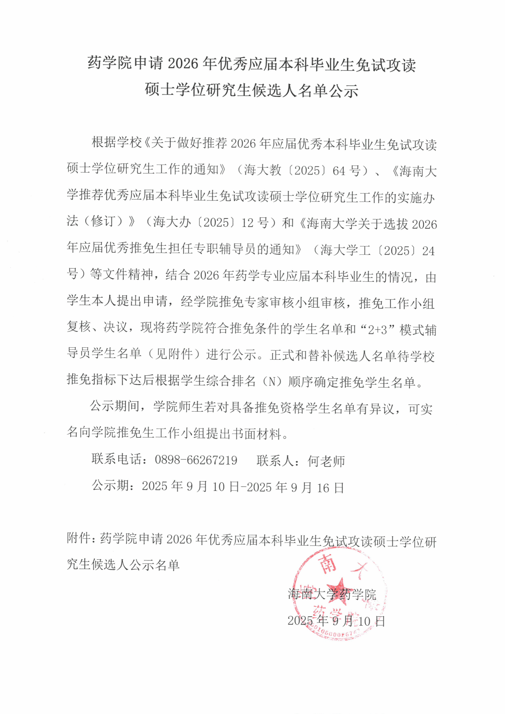iQQtv 申请2026年优秀应届本科毕业生免试攻读硕士学位研究生候选人名单公示
