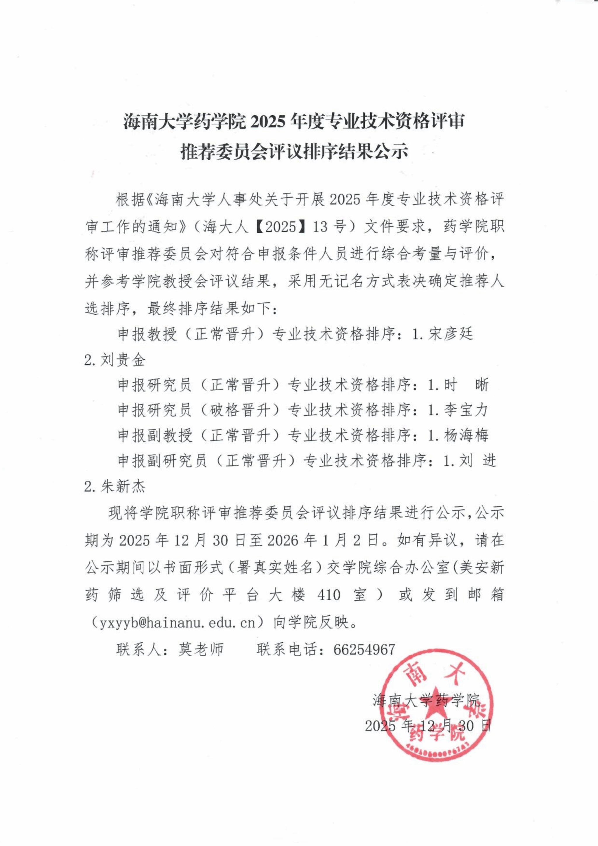 iQQtv iQQtv 2025年度专业技术资格评审推荐委员会评议排序结果公示